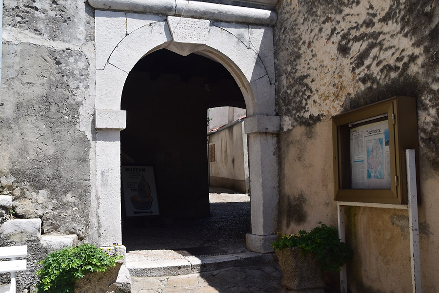 Die Gassen und Gässchen hinter dem Stadttor sind einfach sehenswert. Gleich rechts kann man sich in einem Museum über die Geschichte dieser Gegend informieren. Und eine etwa 300 Jahre alte Olivenmühle bestaunen. Vorbei an der Kirche gelangt man zu einer Aussichtsplattform, von der aus sich eine wunderbare Perspektive auf Mošćenička Draga auftut. Hier sollte man sich wirklich bewusst Zeit nehmen, um die Schönheit dieses kroatischen Landstriches wahrzunehmen.