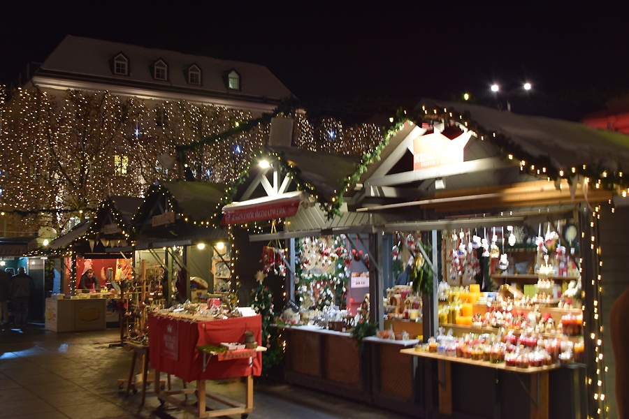 Vom Dom ist es nicht weit zum Christkindlmarkt auf dem Neuen Platz. In Klagenfurt liegen die schönen Plätze nicht weit von einander entfernt. Nach wenigen Schritten taucht man ein in den großen Adventmarkt beim Lindwurm, der über alle Gäste zu wachen scheint. Die Verantwortlichen haben auch hier ein Fotomotiv aufgestellt. Von einer Plattform fotografieren die Besucherinnen und Besucher durch einen Rahmen das Wahrzeichen der Stadt, das beleuchtete Rathaus und den Weihnachtsbaum.