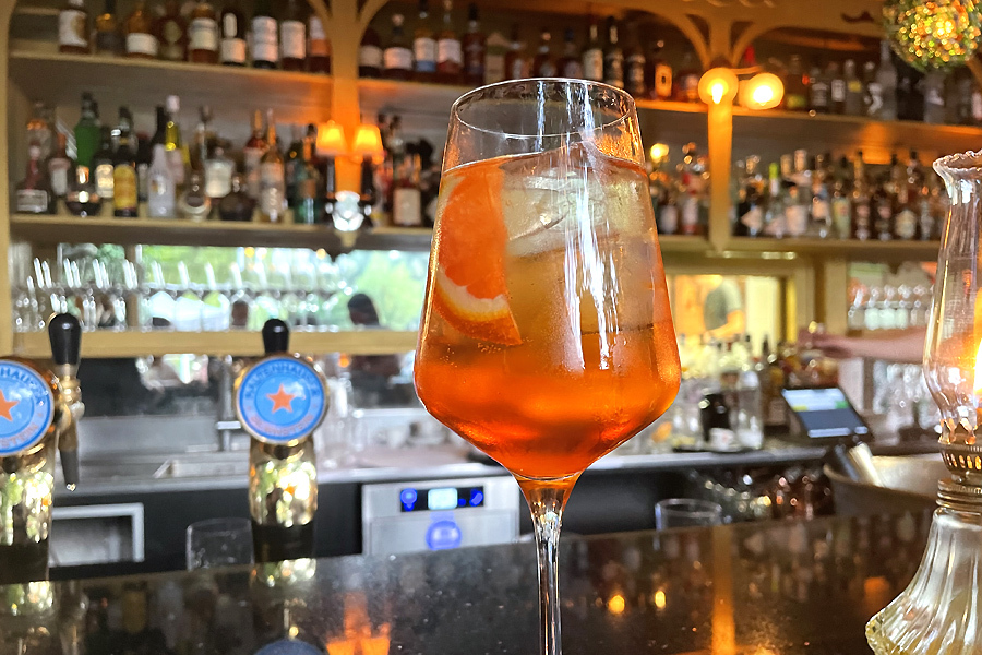 Die Bar draußen ist im Sommer der ideale Ort, um in einen feinen Abend mit Essen, Trinken, Lümmeln – wie es auf Website der Bistro Bar steht – sowie Plaudern und einfach herzhaft Lachen zu starten. Die Getränke werden fein abgemischt. Auch für Biertrinkerinnen und Biertrinker ist natürlich gesorgt. Schnell stellt sich ein entspanntes Gefühl ein und die Vorfreude auf das Essen steigt.