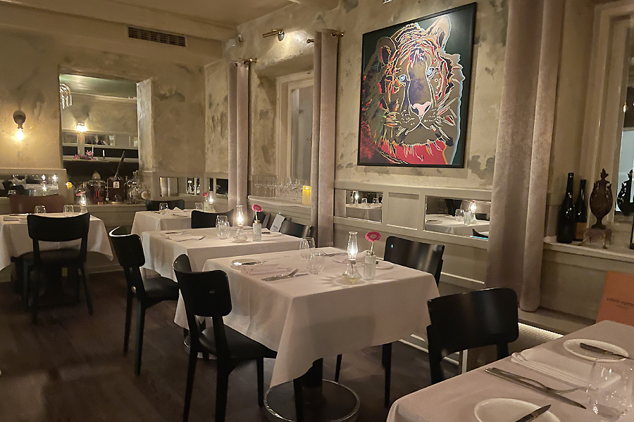 Der Gästeraum im Inneren ist gediegen und wirkt mit einem schönen Holzboden sehr behaglich. Die Bar einen Raum weiter ist stylisch. Hauptdarstellerinnen sind wie in der Bar beim Eingangsbereich die verschiedenen Flaschen für die unterschiedlichsten Getränke und Cocktails.