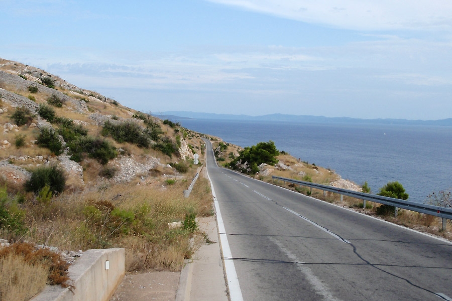 Im Hafen von Split entern wir eine Fähre der Jadrolinija, um auf die Insel Hvar überzustellen. Die Fahrt nach Stari Grad dauert knapp eineinhalb Stunden. Von dort radeln wir zunächst über einen Hügel (für Anfänger durchaus als Berg zu bezeichnen. Für uns, die wir mittlerweile zu „Profis“ mutiert sind eben ein Hügel, Anmerkung) und dann der Küste entlang Richtung Hauptstadt, die denselben Namen wie die Insel trägt.