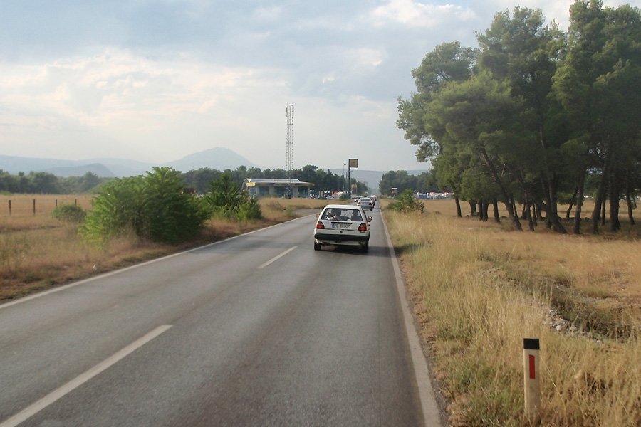 So lassen wir Ulcinj hinter uns und machen uns Richtung Albanien auf. Die Strecke bis zur albanischen Grenze, vor allem die schöne Gegend um Gornja Klezna, sorgt für eine gute Laune in der Runde. Es geht durch eine enge Klamm, durch alte Tunnels und einige kleine Ortschaften, in der die Nähe zu Albanien zum ersten Mal sichtbar wird.