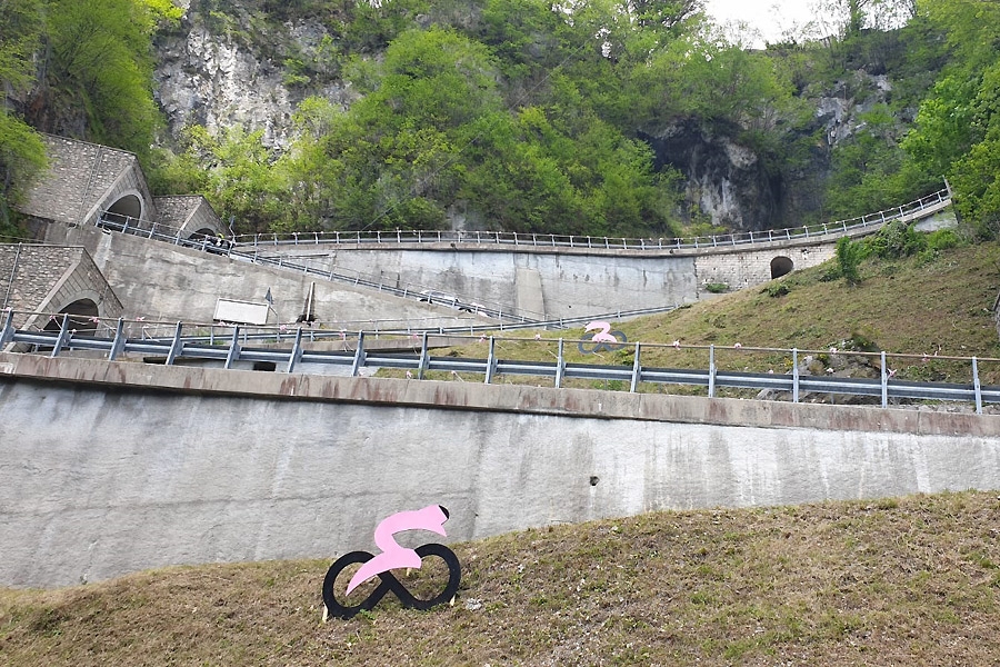 Insgesamt haben die Radprofis am legendären Passo San Boldo, der erst einmal 1966 auf dem Giro-Programm stand, 18 Serpentinen zu meistern. Sie werden auf dem Weg nach oben – vermutlich zu Motivationszwecken – heruntergezählt. Der kleine Übergang am südlichen Alpenrand verbindet die Orte Trichiana im Val Belluna und Tovena im Val Mareno.