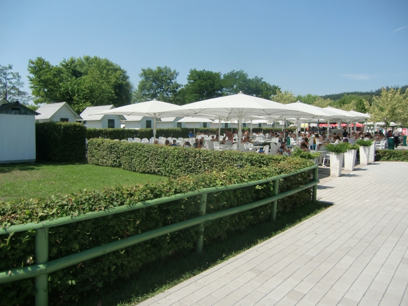 Was für die Kinder die Rutschen und die Sprungtürme sind, ist für die Erwachsenen die Bierinsel. Dort kann man das eine oder andere Bierchen, den einen oder anderen Aperol Sprizz und was es sonst noch so gibt, genießen. Beim Buffet kann man seinen Hunger stillen.