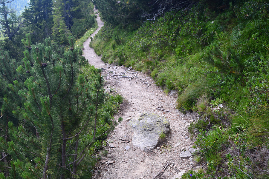 Nach einem kurzen Abstieg zum unteren Oswalder Bock-Sattel verändert sich die Szenerie nach der bisherigen Alm-Landschaft in ein alpines Gelände mit Latschen und felsigem Untergrund. Der kurze, knackige Anstieg eröffnet nach wenigen Minuten ein wunderbares Naturschauspiel.